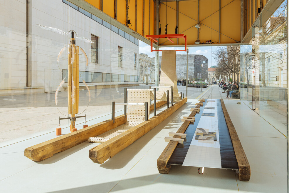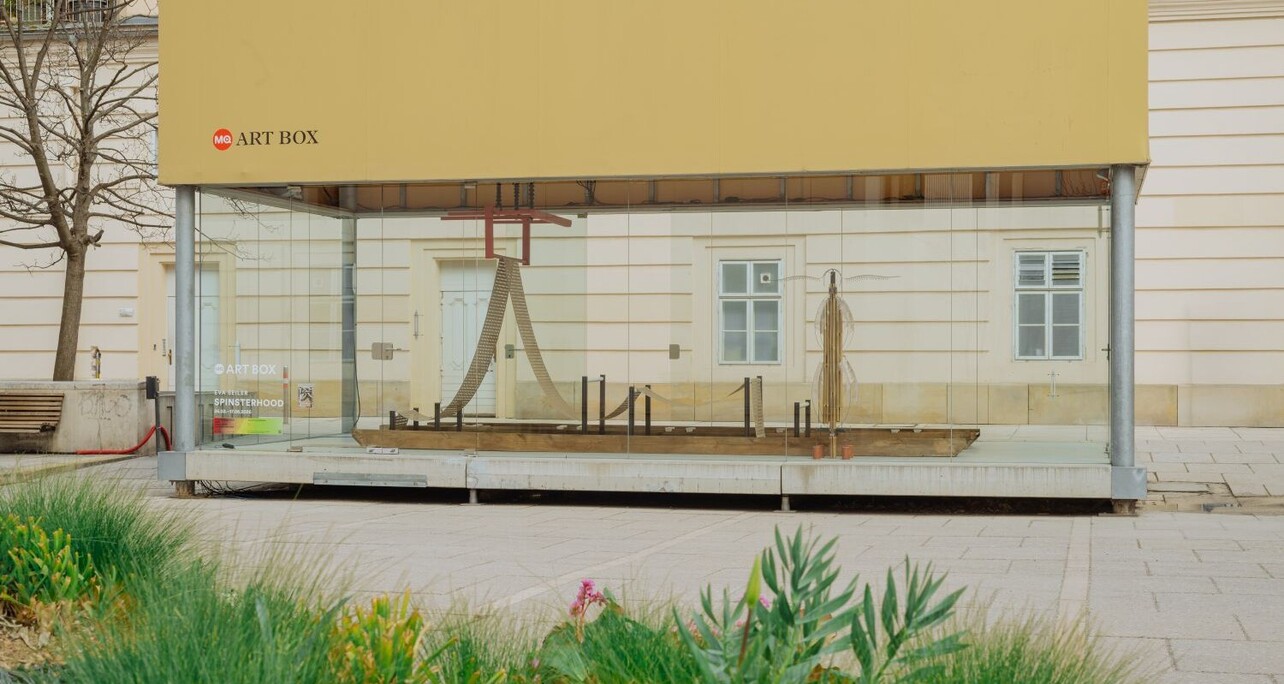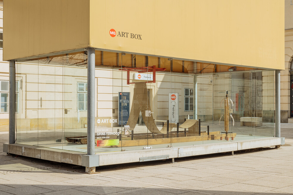 SPINSTERHOOD zitiert architektonisch anmutende Elemente und räumliche Setzungen, die an Dachböden, Webstühle oder Laboratorien erinnern. Diese verweisen auf Produktionsorte, an denen biologische, menschliche und maschinelle Körper zusammenwirken. So wird die Seidenraupe hier zum Sinnbild von Arbeitsbedingungen, Kontrolle und Transformation. Entgegen der verbreiteten Annahme, die Seidenraupenzucht sei ausschließlich im asiatischen Raum verbreitet, deutet SPINSTERHOOD zudem auf einen lokalen Kontext: Wien war über Jahrhunderte ein Ort der Seidenproduktion, Maulbeerbäume prägten das Stadtbild. Das Gebiet des heutigen siebten Wiener Gemeindebezirks, in dem sich das MuseumsQuartier befindet, galt im 18. Jahrhundert als Zentrum der Wiener Seidenfabrikation. Straßennamen wie Seidengasse erinnern noch heute an diese nahezu vergessene Vergangenheit.