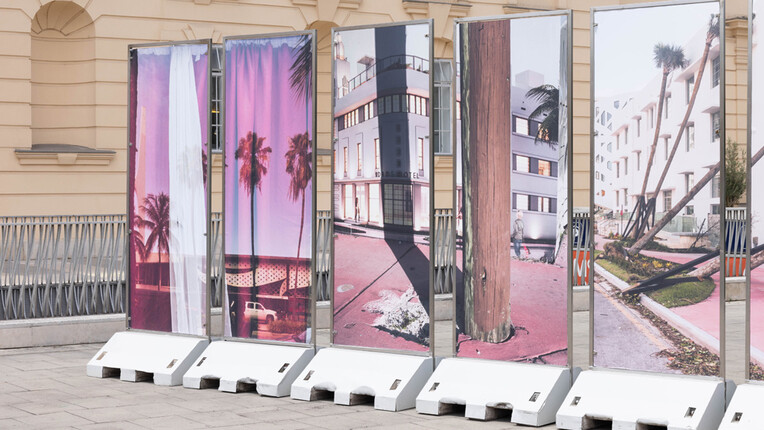 Der österreichische Künstler Nick Oberthaler wurde vom MuseumsQuartier eingeladen, Baucontainer der benachbarten Signa-Baustelle künstlerisch zu gestalten.