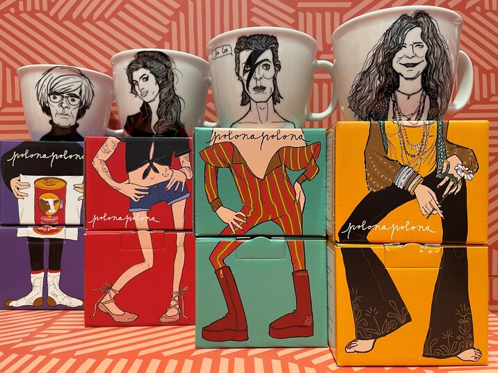 Porzellan mit Grafiken von Polona Pačnik, von einem kleinen Unternehmen direkt aus Ljubljana, alles mit Liebe gemacht.