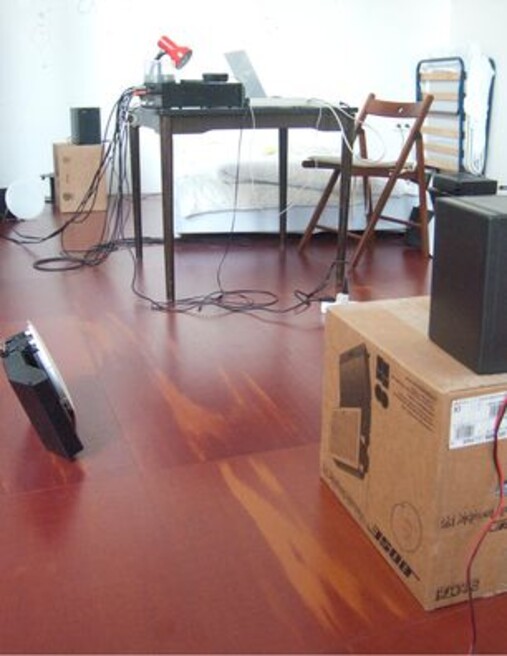 - The B2EFloor version (1995, Melbourne) of 'Backroom Installation', as well as 'Stereo' (2000) featured microphones dangled out of the space, with the sound brought back into the installations to mingle with 'similar' sounds created on my record players.