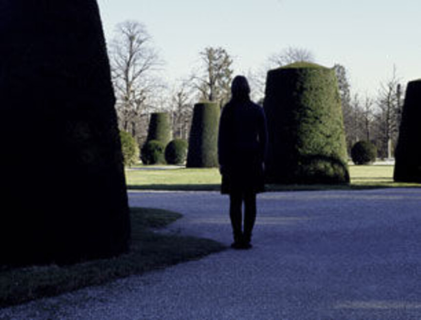 The work I realized during my stay in Vienna, Concealment is a video work composed entirely of still photography (35mm film) makes a continuum to a previous work Statue, which was realized with the same technique. In Statue a figure in the middle of a northern winterly landscape, in Concealment a figure in human constructed landscape, outside botanical garden of Schönbrunn palace. The movement and image is kaleidoscope like, turning the existing world into an apparational one, a kind of apparation with it’s root firmly in a existing mundane surrounding.