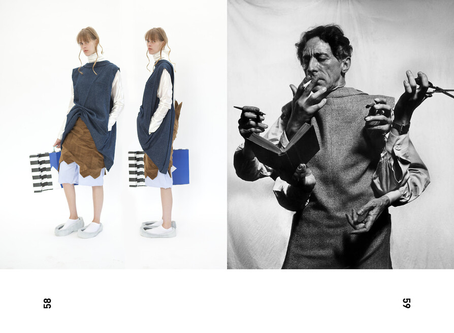 Ich habe mich mit der Frage beschäftigt, weshalb sich die jüdisch-orthodoxe Kultur weigert, neue Einflüsse aus der Mode zuzulassen. Somit stellte ich mich vor die Aufgabe, diese Ästhetik zu analysieren und in das Design einzubeziehen. Die Strenge und Biederkeit der orthodox-jüdischen Garderobe, die mich sehr fasziniert, soll erhalten bleiben oder sogar auf die Spitze getrieben werden. Die vorgegebenen Codes der Rabbi werden berücksichtigt und integriert. Zusätzlich habe ich eigene Codes entwickelt welche dazu beitragen, innovatives Design zu entwerfen. Geometrische Formen, der Herrenanzug und kindliche Naivität bilden die Eckpfeiler meiner Interpretation.