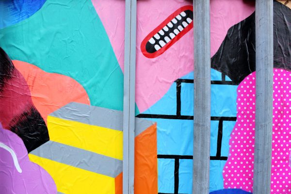 An eclectic mix of interests and influences feed into Grip Face’s projects. Comics, personal introspection and the urban landscape all play a part, while faces, hair and hands are recurring motifs. In Doors Without a Destination, abandoned doorways received colourful makeovers; years later, they were purposely eliminated. Black Faces sees the artist’s musings on the human condition translated into a range of portraits, while murals such as Gestos Post Catarsis or European Bathers address racism and immigration.
