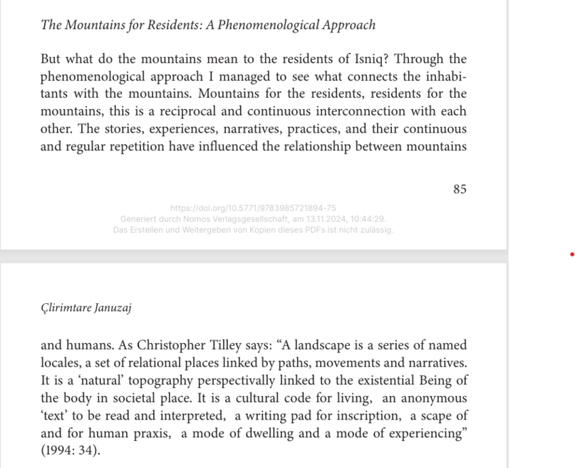 Ein zentraler Schwerpunkt ihrer anthropologischen Forschung ist die Dokumentation der Transhumanz (eine Form der Weidewirtschaft, die saisonale Wanderungen von Nutztieren zwischen festen Sommer- und Winterweiden) in den Bergregionen des Kosovo. Dieses Projekt, das auf einer ganzheitlichen, gemeinschaftsbasierten Methodik beruht, untersucht saisonale Mobilität, ortsgebundenes Wissen und nachhaltige Praktiken der Viehzucht. Diese Forschung hat internationale Anerkennung für ihren Beitrag zum Verständnis des immateriellen Kulturerbes und der ökologischen Anpassung in Hochlandregionen erhalten.