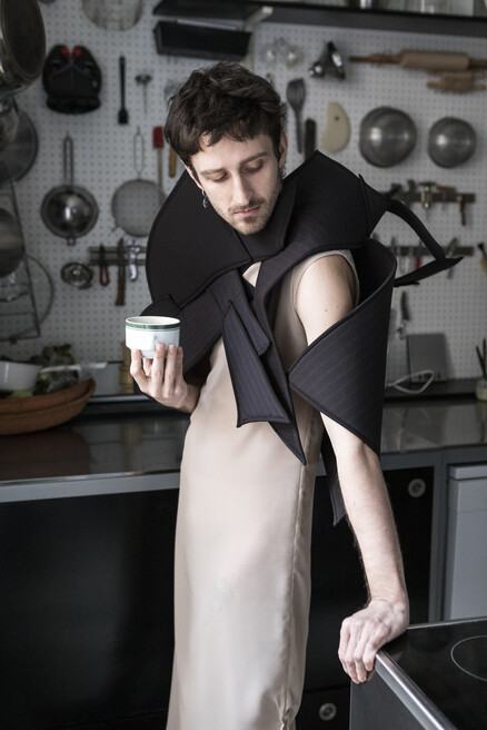 Während seiner Residency im MQ arbeitet Idan Yoav weiter an seinem Modeprojekt, das Kleidung als Medium für Kreativität, Persönlichkeit und verantwortungsbewusstes Gestalten neu denkt. Alle Stücke entstehen ausschließlich durch Wiederverwendung: Kleidungsstücke und vergessene Textilien werden in sorgfältiger Handarbeit und durch Upcycling in einzigartige Formen verwandelt. Die Kollektion vereint zweierlei: künstlerische Ready-to-wear-Unikate für den Alltag sowie theatralische Entwürfe, die zwischen Kostüm und Kleidung changieren. Jede Silhouette ist charakterstark, bewusst gestaltet und erzählt ihre eigene Geschichte. Anstelle von Massenproduktion steht ein achtsamer, kreativer Prozess im Mittelpunkt, der aus dem Bestehenden schöpft, Geschichten weiterträgt und den Blick für Material, Form und Identität schärft.
