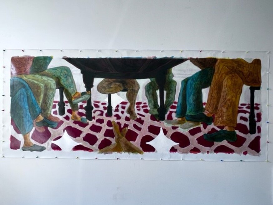 Während seiner Residency im MQ möchte Petr Kirusha an einem neuen, stark ortsbezogenem Projekt arbeiten. Er fängt dabei die lokalen Besonderheiten eines Orts oder einer Situation ein und fügt als wiederkehrendes Symbol einen weißen Rhombus hinzu. Wobei der Künstler diese Form auch als umgekehrten Kreis bezeichnet, der nach innen schrumpft. Die Farbe Weiß symbolisiert dabei die Leere im Raum der Malerei und wird zur Farbe der Leinwand.