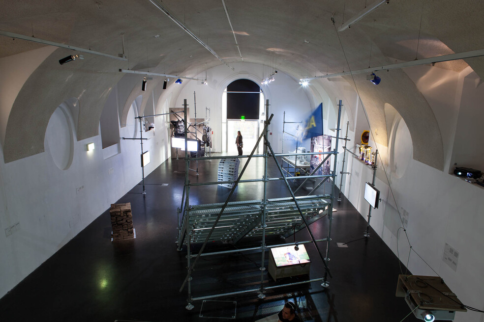 Die Kunstwerke gruppieren sich rund um die monumentale Projektion von Marta Popivodas* Filmessay „Yugoslavia: how ideology moved our collective body“, der einen sehr persönlichen Blick auf die Geschichte des sozialistischen Jugoslawiens und seines tragischen Endes wirft. Die Archivaufnahmen zeigen nicht nur die Macht der Ideologie, 5.000 Menschen als Kollektiv zu bewegen, sondern auch, dass die Menschen im Kollektiv die Macht haben, die Ideologie zu vernichten.