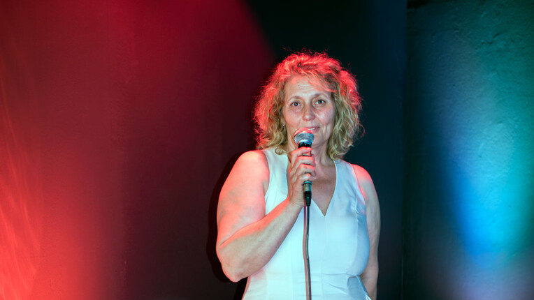 Die Dramatikerin und Dramaturgin Olga Dimitrijević öffnete im AJNHAJTCLUB ihre „JubiläumsKaraokebar“, in der das Publikum Lieder singen kann, deren Texte auf die Lebensgeschichten exjugoslawischer, in…