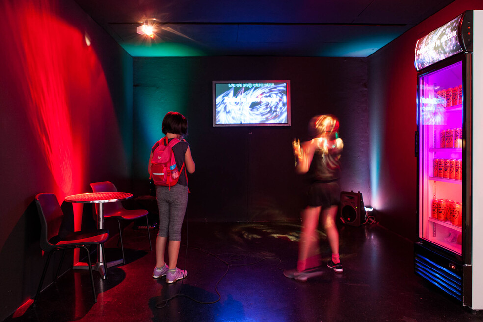 Die Vielfalt der Werke, die in der Ausstellung zu sehen sind, zeigt sich u.a. an den verfremdeten Skulpturen sozialer Wohnbauten von Bernd Oppl, die auf die Instabilität und auf die Mängel solcher Bauwerke verweisen. Im Vergleich zu anderen Ländern zwang die EU Österreich ziemlich spät dazu, GastarbeiterInnen in soziale Wohnbauten ziehen zu lassen. Gleich daneben befindet sich die „festliche Karaokebar“ von Olga Dimitrijević*. Auf Grundlage von Gesprächen, die die Künstlerin mit Gastarbeiterinnen verschiedener Altersgruppen führte, dichtete sie deren Lieblingslieder um. Diese Lieder können BesucherInnen nun in der Karaokebar singen, um die Leben dieser Frauen zu feiern. Die speziell entwickelte Ausstellungsgestaltung von Martin Hickmann, Universität Mozarteum Salzburg, wird durch Lichtinstallationen des Künstlerduos ATK!* zum Glühen gebracht.