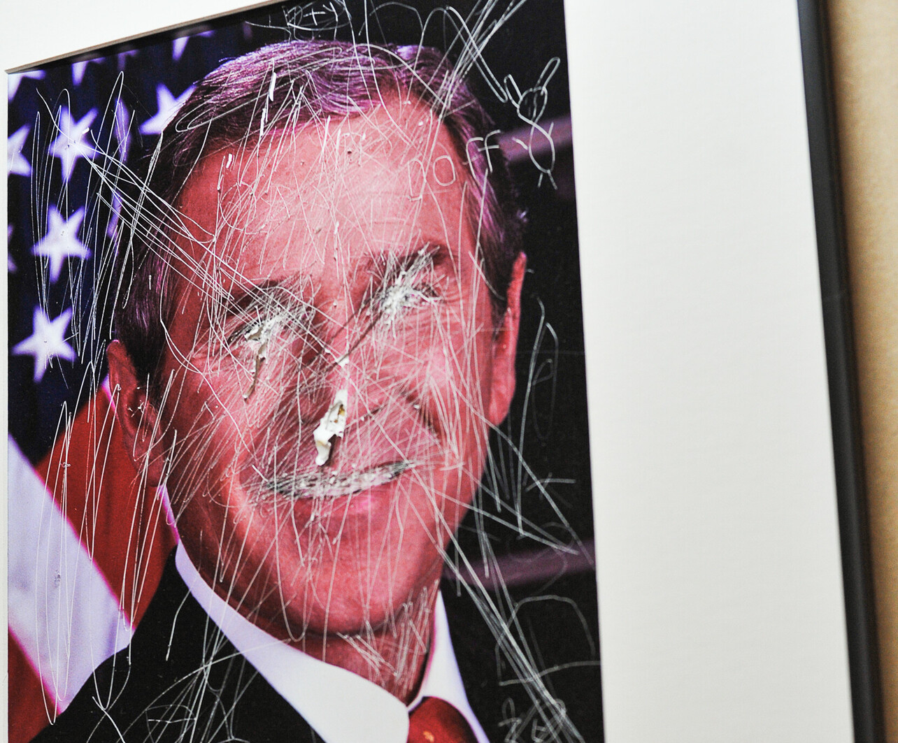Im Video The Punishment von Ondre Brody und Kristofer Paetauexerzieren Kinder den scheinbar natürlichen Drang das Böse – in diesem Fall eine Fotografie von George Bush – lustvoll zu bestrafen. In dem die Gesichter in den digitalen Porträts von Ben DeHaan zerrinnen, wird die Fragilität digitaler Formate, ihre Ablaufzeit thematisiert. Die japanische Hutmacherin Maiko Takeda kreiert Masken und Kopfbedeckungen wie aus einer virtuellen Welt, die Björk seit einigen Monaten auf Konzerten trägt. Der deutsche KünstlerMartin Backes adaptiert den Pixel-Filter von Google Street View, der Gesichter unkenntlich macht, auf den Stoff seiner Masken Pixelhead. Auf der Suche nach dem richtigen/perfekten Gesicht Dank plastischer Chirurgie testet der Künstler und Filmemacher Martin C de Waal die Grenzen seiner Persönlichkeit. Narciss, Mirko Lazovićs Skulptur aus Spiegeln, verwehrt das eigene Abbild darin zu sehen. Die vielen gezeichneten Gesichter des Bryan Lewis Saunders: Der amerikanische Künstler erschafft seit vielen Jahren Tag für Tag ein Selbstporträt. FACELESS part II zeigt die 48-teilige Serie Under the Influence, die unter dem Einfluss täglich wechselnder Drogen und Substanzen entstand.