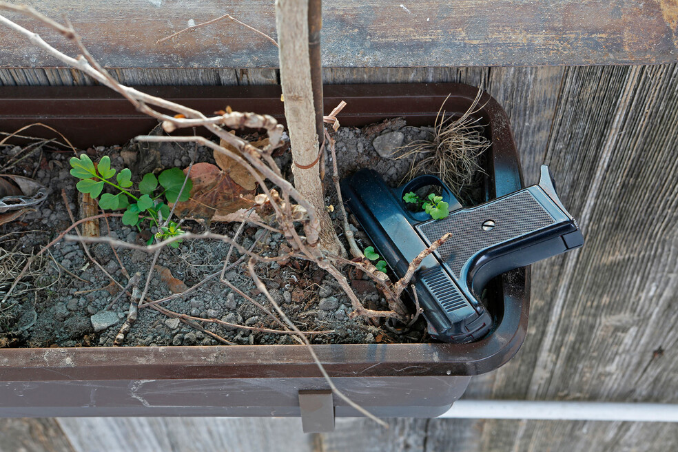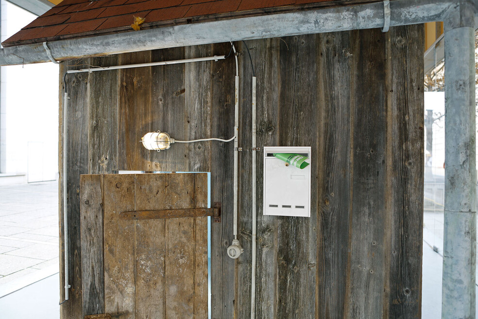 Alfredo Barsuglia legt zahlreiche Spuren entlang dystopischer Narrative, die wie Trigger wirken, sich jedoch nicht eindeutig enträtseln lassen. So platziert er an der Hausfassade einen übervollen Briefkasten, aus dem u.a. Infoblätter zum Klimawandel herausquellen, verweist über einen Hundenapf auf die Hausbewachungsfunktion von Hunden, positioniert im Innenraum eine Zimmerpflanze und eine Pistole. Das Szenario changiert zwischen Bedrohung, Ungewissheit und Unheimlichkeit – was ist passiert, wo sind die Bewohner:innen des Hauses? Endzeitstimmung liegt in der Luft.