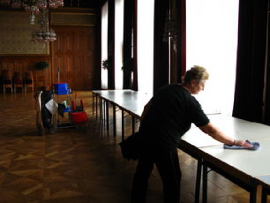hat einen österreichischen Politiker gebeten, abgetragene Kleidungsstücke zur Verfügung zu stellen. Diese Kleider wurden re-cycelt und – wie in vielen Haushalten üblich – zu Putzfetzen zugeschnitten, um sie für Haushaltszwecke weiter zu verwenden. So ließ Tanaka die ehemals guten Kleider zu Putzfetzen wiederverwerten, die schließlich dafür benutzt werden, die Gänge eines Ortes politischer Repräsentation in Wien zu reinigen. Der Künstler verfolgt den Prozess in einer filmischen Arbeit und geht der Ge- und Verbrauchs-Geschichte politischer Kleidungsstücke nach. Mit seiner durchaus humorvollen Arbeit unterläuft der Künstler den Nimbus, den profanen Heiligenschein, der den Status eines Politikers, einer Politikerin im wahrsten Sinn des Wortes bekleidet. Durch die Verwandlung in Putztücher werden die Kleider wieder in ihren banalen Ausgangsstatus zurückversetzt, die soziale Rolle eines Politikers, alle dafür notwendigen Requisiten ihres medialen Zaubers beraubt und auf den nüchternen Boden des Alltags gesetzt. Die Arbeit vollzieht in wenigen Minuten einen Bedeutungswandel, der ernüchtert und zugleich amüsiert, und vor allem zur kritischen Distanznahme gegenüber der medialen Darstellung politischer Akteure und Akteurinnen herausfordert.