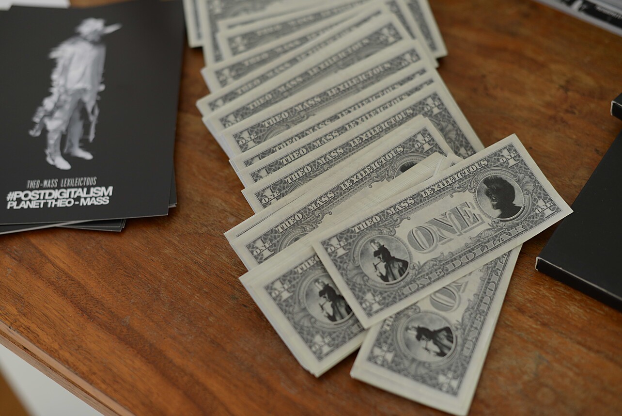 My work was separated into episodes. I had different missions in each episode. The first one was titled “My power is beyond your understanding” and was all about me travelling around the world showing who I was, showing that I existed as a superhero. The episode was themed around the superpowers of our time: money, fashion, and media. My costumes and masks come from the fashion world. Fashion is a medium that I use to translate and communicate different aspects of the story every time. I printed my own currency, the Theo-Mass dollar, and I started doing collaborations with fashion and art magazines.