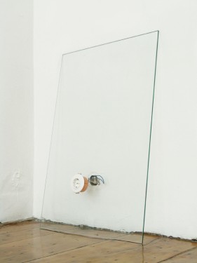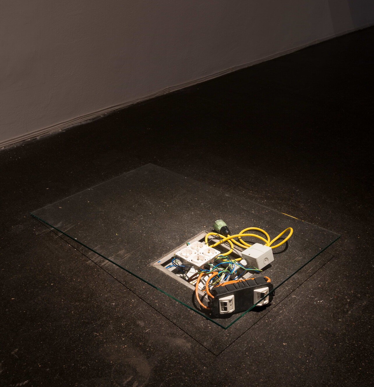 Das ist der Titel einer Arbeit, die eine Steckdose zeigt, die aus der Wand, in der sie üblicherweise eingebettet ist, in eine davor gelehnte Glasplatte verpflanzt wurde. Die Steckdose ist immer noch mit ihren Kabeln in der Wand verbunden und funktioniert. Ich würde den Titel nicht so aufdröseln, es ist mehr eine Haltung, dem Selbstverständlichen etwas Besonderes zuzugestehen.