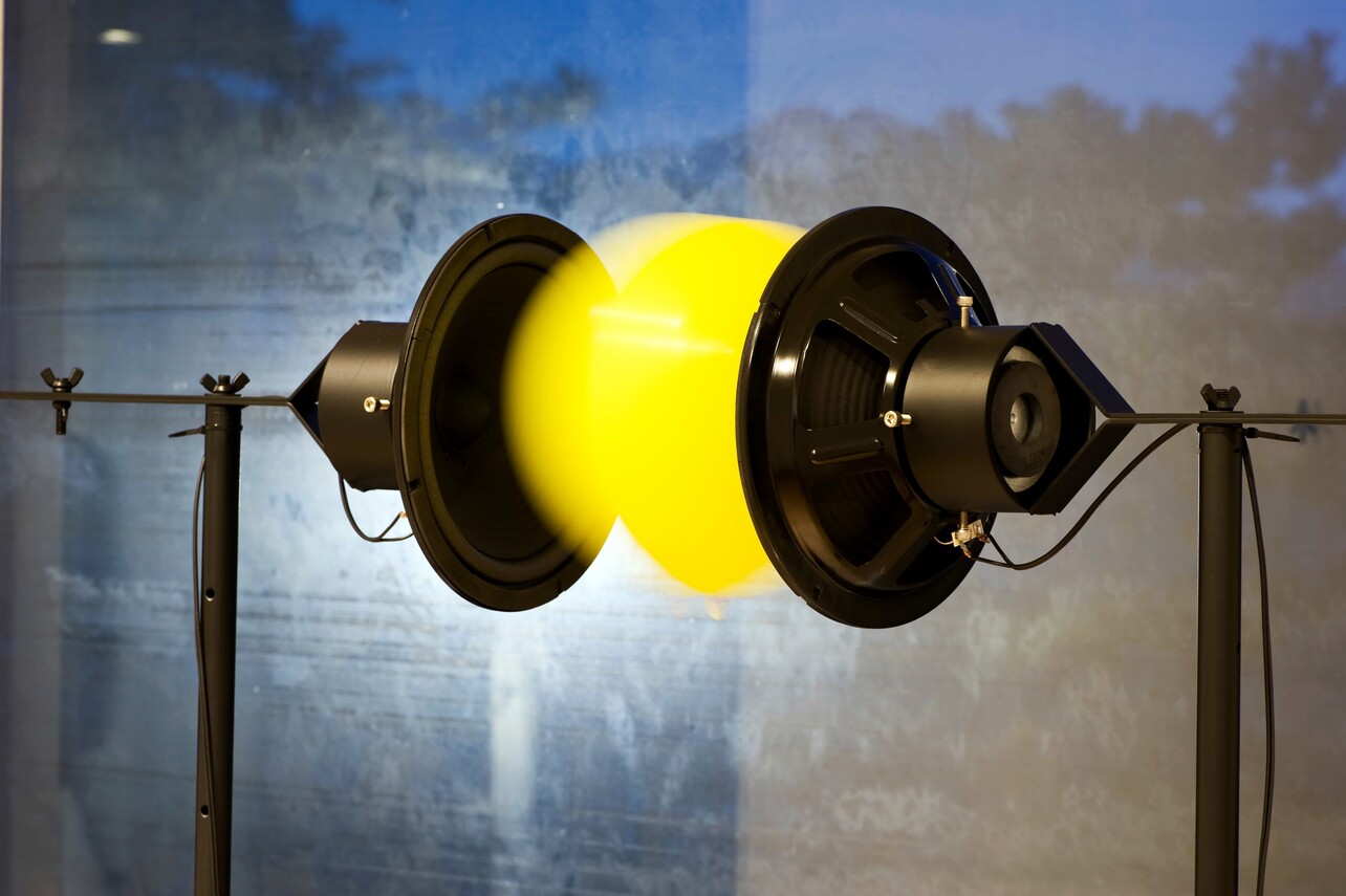 Ja. „Yellow Balloon“: Zwischen zwei Lautsprechern auf Stativen hängt ein gelber Luftballon. Durch den Druck der Schallwellen, die der Klang aus den Lautsprechern erzeugt, wird der Ballon bewegt. Der Klang ist das dreifache Klopfen des Hämmerchens eines Richters, der den Beteiligten einer Verhandlung damit Stillschweigen signalisiert, sie zur Ordnung aufruft oder aber die Entscheidungsverkündung des Richters ankündigt. Diese Arbeit soll aufzeigen, dass jedes Individuum sich nicht völlig frei außerhalb eines Systems, wie etwa eines Staates oder einer Stadt, etc. bewegen kann.