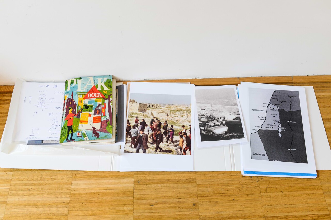 Ja, eine Sache, die mich immer wieder beschäftigte, werde ich jetzt auch hier in der Ausstellung „united nations extended - The Vienna Dialog“ zeigen: zwei Briefmarken. Wie viele andere Kinder und Jugendliche auch sammelte ich damals Briefmarken. Meine Spezialität waren Länder. In einem Laden in Syrien fand ich dann besagte Briefmarken. Beide zeigen eine Zeichnung von Israel mit einem Blutfleck, in dem ein Dolch steckt. Das war für mich damals ein sehr hartes Bild. Ich war wirklich erschrocken von der Heftigkeit dieser Briefmarken und habe sehr mit mir selbst gerungen, ob ich sie überhaupt kaufen sollte. Schließlich war ich Sammlerin und habe sie gekauft. Ich weiß aber noch, dass es eine wirklich schwierige Entscheidung für mich war. Bis ich dann wirklich verstanden habe, was hinter der Zeichnung auf den Briefmarken steckt, vergingen viele Jahre. Die Zeichnung verweist auf das Massaker von Deir Yasin, das im April 1948, kurz vor der Gründung des Staates Israels, passierte.