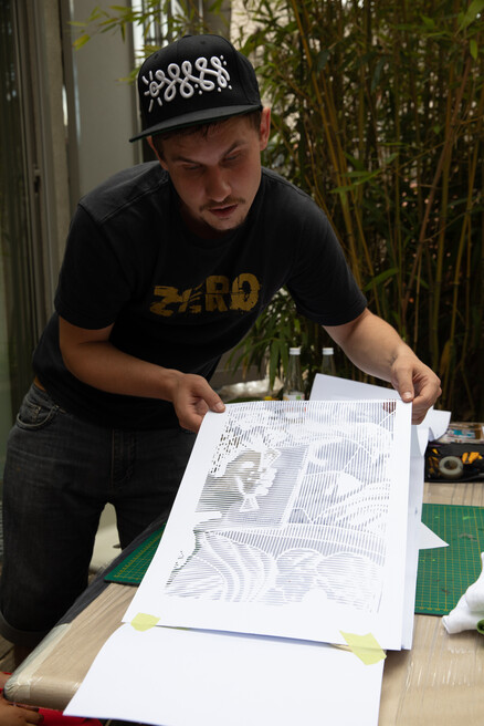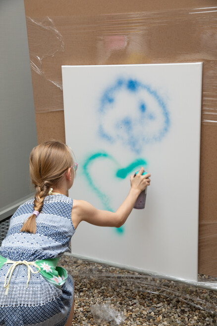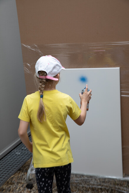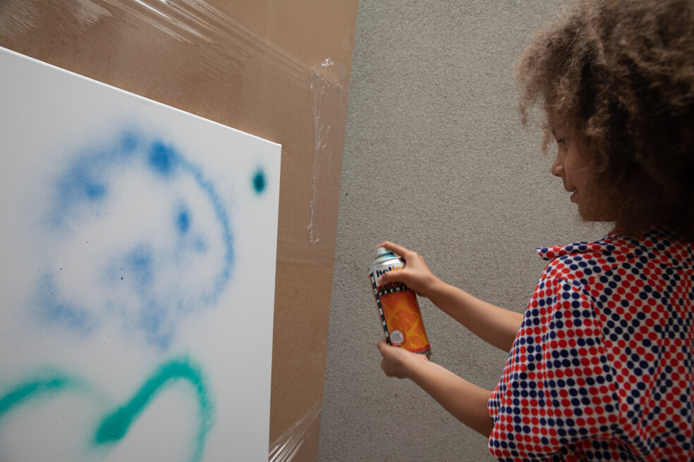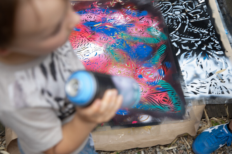 Gemeinsam mit dem österreichischen Künstler und Kurator Sebastian Schager haben Kinder und Jugendliche im Workshop von Lady Aiko sprayen gelernt, Taschen und T-Shirts mit Schablonen gestaltet und so ihre einzigartigen Ideen umgesetzt.