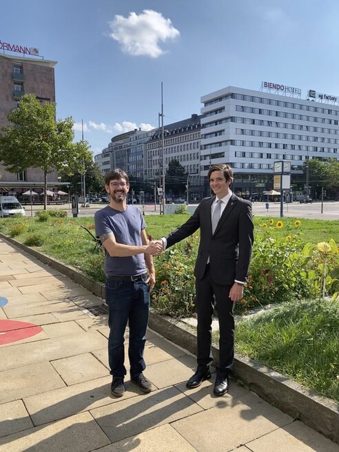 Das Bundesministerium für Blühende Landschaften (BMBL) ist schon 2018 im Rahmen eines Festivals in Kitzscher, einer Kleinstadt vor Leipzig, entstanden. Wie zahlreiche andere ostdeutsche Kleinstädte im ländlichen Raum ist der Ort von Bevölkerungsrückgang und Leerstand geprägt. Von den blühenden Landschaften, die Helmut Kohl 1990 für die ostdeutschen Länder versprach, war hier nicht viel zu sehen, also beschloss ich kurzerhand ein Ministerium zu gründen, um die Aufgabe selbst in die Hand zu nehmen. Im Gegensatz zu den übrigen Ministerien, die ihren festen Sitz in Bonn und Berlin haben, ist das BMBL eine nomadische Bundesbehörde. Sie kommt in die Orte und lässt sich dort temporär nieder, um die Menschen beim Transformationsprozess in blühende Landschaften zu begleiten. Meine Aufgabe als Bundesminister für blühende Landschaften ist es gemeinsam mit meinem Team aus engagierten Staatssekretär:innen um Constanze Müller und Simon Korn den Menschen zuzuhören und gemeinsam Ideen und Visionen zu entwickeln, wie diese blühenden Landschaften Realität werden können. Im letzten Jahr fiel dann die Wahl aus mehreren Gründen auf Chemnitz: Zum einen wollten wir sehen, wie sich die Arbeit verändert, wenn wir statt einer sächsischen Kleinstadt in einer Großstadt sind. Das BMBL ist ein junges Ministerium, das selbst viel lernen kann und auch möchte. Hinzu kommt, dass Chemnitz 2025 Kulturhauptstadt Europas sein wird und daher eine gewisse Offenheit für neue Anstoße und Impulse hat – diese Dynamik wollten wir als Ministerium nutzen. Außerdem hat Chemnitz ähnliche Probleme wie Kitzscher. Chemnitz hat seit 1990 fast ein Drittel seiner damaligen Einwohner:innenzahl verloren; nachdem sich die Bevölkerungszahl in den letzten Jahren zuerst stabilisierte, sind die Prognosen bis 2035 wieder rückläufig. Mit Aktionen wie dem gemeinsamen Bau einer blühenden Sitzlandschaft auf zwei Parkplätzen trotzten wir der Straße einen Platz für Gemeinschaft ab und schufen Gelegenheiten zum Zusammenkommen, Trinken und Essen. Daneben gab es die Möglichkeit, konkrete Wünsche für Chemnitz zu äußern, die dann von der Staatssekretärin Stephanie Brittnacher in Form von Comics visualisiert wurden. Schließlich haben wir mit der Verleihung der Helmut-Kohl-Rose an besonders verdienstliche Chemnitzer:innen das Engagement der Menschen für ein blühendes Chemnitz gewürdigt. Auch wenn das BMBL Ende September sein Ladenlokal verlassen hat, bleiben die Sitzlandschaft und die Verknüpfungen mit den zahlreichen Vereinen und Institutionen mit den wir zusammengearbeitet haben, Chemnitz erhalten.