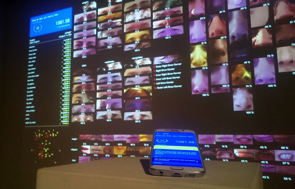Ruben van de Ven untersucht Funktionsweisen von Emotionserkennungsprogrammen: diese werden sowohl zur „objektiven“ Vermessung und Bewertung von Emotionen verwendet als auch als technologisches Hilfsmittel eingesetzt, um optimierte Darstellungsweisen von Emotionen zu trainieren. Die Installation besteht aus zwei Teilen: einem Videospiel in dem es darum geht, jene als ideal gesetzten Emotionsausdrücke zu trainieren, um die Darstellung von Emotionen zu optimieren und einer Projektionswand, die Datenerfassung und -verarbeitung von Emotionen, wie sie von Konzernen betrieben wird, widerspiegelt. Auf der Projektionswand werden über das Videospiel gesammelte Bewertungsdaten von Gesichtsausdrücken in einem Ordnungsraster systematisiert zugeordnet, gezeigt.