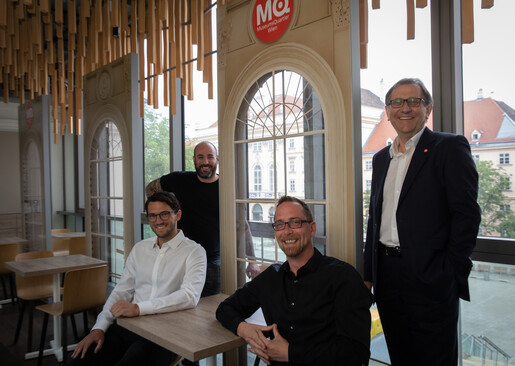 die Innenarchitektur des Gastraumes angepasst werden. So kommen im Café Leopold Wände zum Einsatz, die ganz bewusst den Standort MuseumsQuartier widerspiegeln. Mit einem gebrandeten Konzept aus poliertem Acrylglas und Foliendruck werden auf den Wänden unterschiedliche Motive aus dem MQ zu sehen sein.