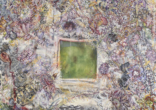 Karin Pliem arbeitet hintergründig mit großzügigen Formen und Architekturen, die sie vordergründig mit unendlich vielen Natur-Elementen und Details anreichert und dadurch gleichsam überwachsen lässt. Ihre vielfältige Welt aus ge- und erfundenen Blüten, Gräsern, Fruchtkapseln und anderen Organismen bildet eine äußere Struktur, die sich teilweise über das Geschehen dahinter legt, sodass sich das Auge langsam einen Weg durch zwei „Fremde“ – die Natur und die zivilisatorische Kultur – bahnen muss.