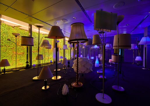 Johannes Rass verwendet hierfür rund 125 alte Stehlampen, die mit modernen LEDs bestückt und mit einer digitalen, dreidimensionalen Licht-Sound-Installation bespielt werden. Die Kombination aus analoger „Stehlampen-Hardware“ und digitalen Inhalten und Effekten erzeugt eine besondere Spannung. Den BetrachterInnen bleibt es selbst überlassen, ob sie nur einen kurzen Blick auf den „Lampenwald“ werfen, oder ob sie sich ein wenig Zeit nehmen, um in den weit gespannten Rahmen des Projekts einzutauchen.