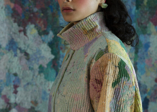 „Die Ideologie, dass aus dem Ende eines anderen, in unserem Fall ausrangierten Textilresten, etwas Neues entstehen kann, ist unsere Hauptmotivation und Interpretation von Nachhaltigkeit. Meine beiden Kollektionen ‚Re‘ und ‚Bor(r)o(w)‘ streben danach, Verschwendung zu minimieren und die Nutzung zu maximieren. Was die ästhetischen Beweggründe für ‚Re‘ betrifft, so haben wir uns von europäischen Meistermalern wie Monet und deren Sinn für Farbe und Komposition inspirieren lassen. Für ‚Bor(r)o(w)‘ haben wir einen organischeren, minimalistischeren und dennoch spielerischen Ansatz für die Komposition der Textilien gewählt“, so Riddhi Jain Satija.