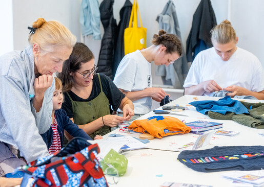 Workshops – kreative Flicktechniken: Besucher*innen probieren verschiedene kreative Techniken des textilen Flickens aus, z.b. Swiss & Scotch Darning, Visible Mending, Sashiko, Punch needling, Weben und Filzen. Zudem gibt es die Möglichkeit, ungenutzte Kleidungsstücke mit Hilfe einer Nähmaschine zu ändern. Alle Workshops werden von Expert*innen geleitet und sind kostenlos.