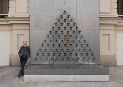 Am Donnerstag präsentierte das MuseumsQuartier Wien die Intervention des ukrainischen Künstlers Pavlo Makov, „The Fountain of Exhaustion“, im Beisein des Künstlers im MQ Haupthof.