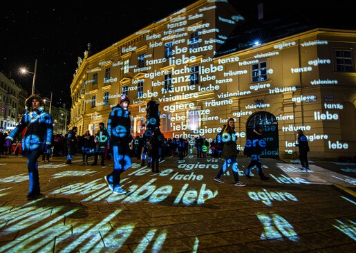 „starsky greift mit ihrem Konzept ‚Winter of Love‘ sowohl gesellschaftsrelevante Fragen auf, die zum Nachdenken anregen, erzeugt mit ihren Lichtprojektionen aber dennoch eine Welt der Zuversicht und Hoffnung“, so MQ-Direktorin Bettina Leidl.
