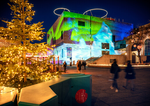 In der Mitte des MQ Haupthofs wird der „Winterhimmel“ mit rund 380m² Fläche nicht nur vor Regen und Schnee schützen, sondern mit künstlerisch gestalteten Bewegt-Projektionen von „Lumine Projections“ die Besucher*innen in fantastische Winterwelten eintauchen und die Realität vergessen lassen. Gleichzeitig wird auch die Fassade des Leopold Museums bespielt, sodass die Projektionen miteinander agieren bzw. ineinander übergehen können.