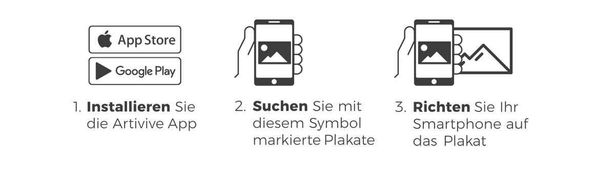 Alles, was Sie dazu benötigen ist ein Smartphone, die kostenlose App „Artivive“ und eine Internetverbindung. Starten Sie die App, richten Sie Ihr Mobiltelefon auf eines der Plakate der acht teilnehmenden Kulturinstitutionen Architekturzentrum Wien, Dschungel Wien, Halle E+G, Kunsthalle Wien, Leopold Museum, mumok, Tanzquartier Wien, ZOOM Kindermuseum, MQ und beginnen Sie Ihre Reise Sie durch Österreichs Musikwelt!
