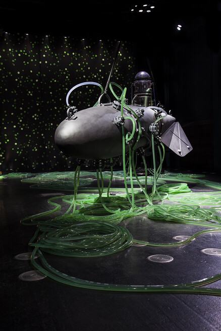 Im MQ Freiraum zeigt der österreichische Künstler Thomas Feuerstein seine Ausstellung METABOLICA. Der Werkzyklus, an dem er seit 2017 arbeitet, wird hier erstmals vollständig präsentiert. Feuerstein verwandelt den Raum in eine molekulare Fabrik: Aus Algen und ihren Fettsäuren entstehen neue Materialien, die zu Kunstwerken geformt und wieder in den Kreislauf zurückgeführt werden. Die Ausstellung verbindet Kunst und Wissenschaft und eröffnet neue Perspektiven auf Ressourcen, Kreislaufwirtschaft und gesellschaftliche Zukunftsvisionen.