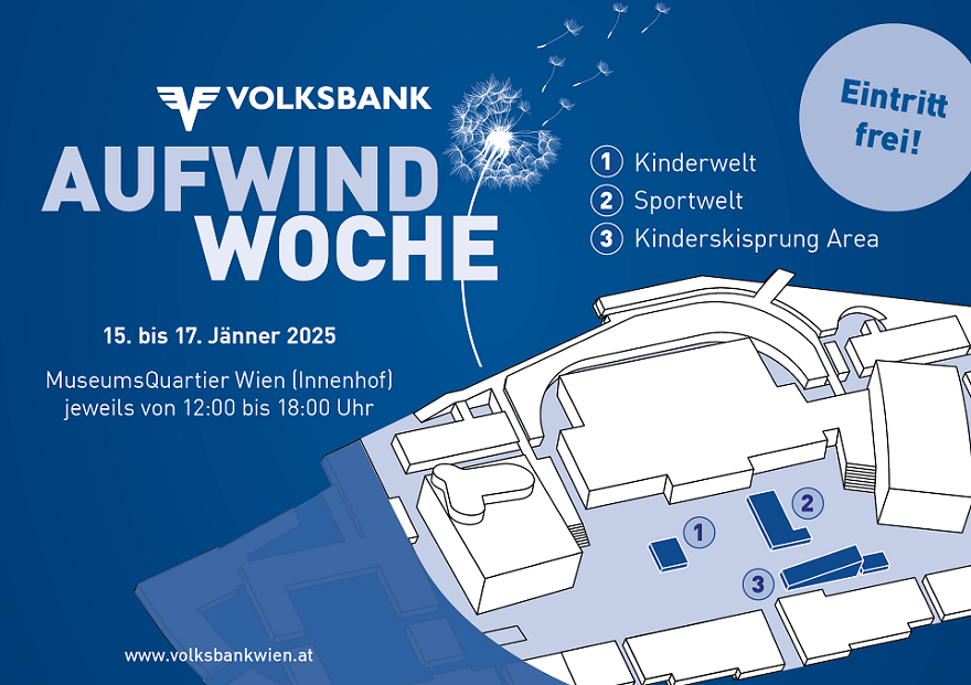 Unter dem Motto „Mit Aufwind ins Jahr 2025“ veranstaltet die Volksbank von 15. bis 17. Jänner (jeweils von 12:00 bis 18:00 Uhr) einen fulminanten Jahresauftakt im Wiener MuseumsQuartier. Drei Tage lang erwartet die Besucher:innen ein abwechslungsreiches Programm voller sportlicher, kreativer und spannender Erlebnisse.