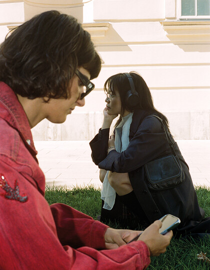 „In meiner Arbeit beschäftige ich mich häufig mit Menschen aus meinem näheren Umfeld, oft mit Freund:innen und meiner Familie. Dabei geht es mir immer um die Personen, die ich fotografiere, seltener um den Ort an sich. Der Ort des Fotos ist jedoch ein wichtiger Faktor dafür, ob sich die Personen, die ich fotografiere, und ich wohl fühlen – und somit auch entscheidend dafür, wie das Foto wird. Das MuseumsQuartier ist ein sehr vertrauter Ort: für mich, für die Personen auf den Fotos und vermutlich für viele Menschen, die in Wien leben. Ich wollte mit den Bildern diese Vertrautheit transportieren und eine intime Atmosphäre schaffen. Ich denke das gelang an einem so öffentlichen Ort nur, weil er allen so nahe ist.“ – Anna Breit